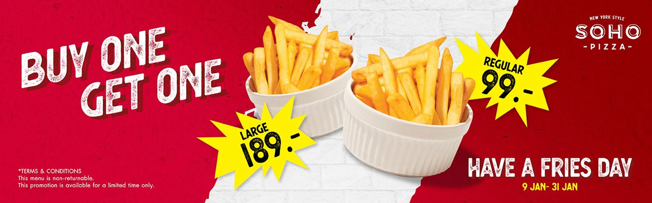 Everyone’s favorite classic NY style pizza with the Soho Pizza cheese mix and oregano.