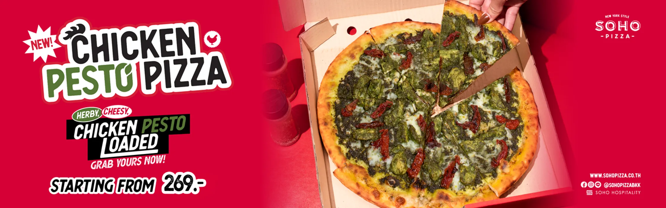 Marinated pesto chicken with sundried tomatoes, pesto sauce & signature cheese mix — rich, aromatic, and full of flavor in every bite.