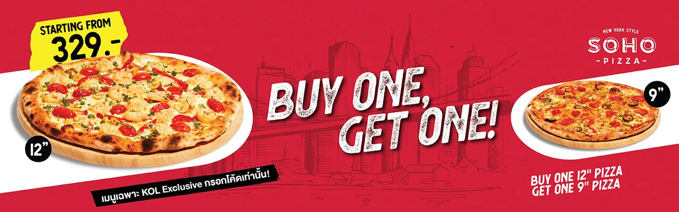 🍕 Exclusive for KOL customers: Get a free 9˝ pizza only when applying the code. ⚠️ (If no code is applied, you will receive only the 12˝ pizza.) For the second tray, you can specify your choice of toppings in the order notes as follows - Cheese 9˝ - Creamy Garlic 9˝ - Italian Olives 9˝ - Roasted Mushroom 9˝ - Veggie Delight 9˝ - Smokinʹ BBQ Chicken 9˝ * If the customer does not specify a choice for the second pizza's toppings, it will default to Cheese.